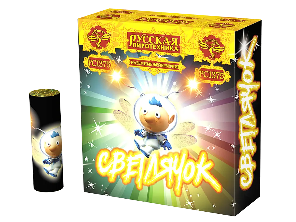 Раскручивается на земле, разбрасывая золотые искры и светясь красным, бирюзовым, жёлтым огнём.