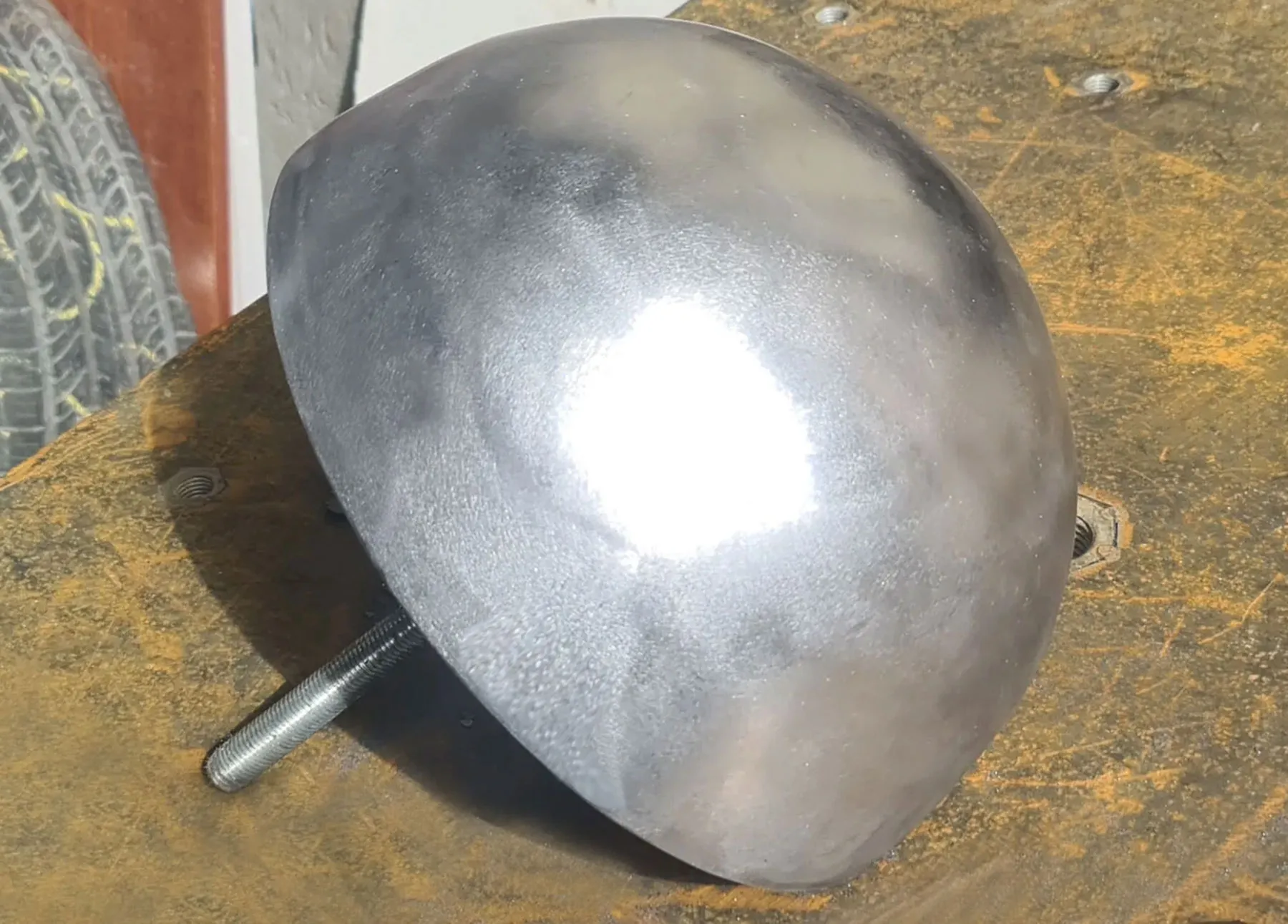 Изготовление металлической полусферы требует профессионального подхода, работать с углеродистой сталью достаточно сложно даже в специализированной компании и на современном оборудовании. Вручную же изготовить полусферу с толщиной стенки 6 миллиметров из обычной листовой стали требует немало времени и существенных трудозатрат.