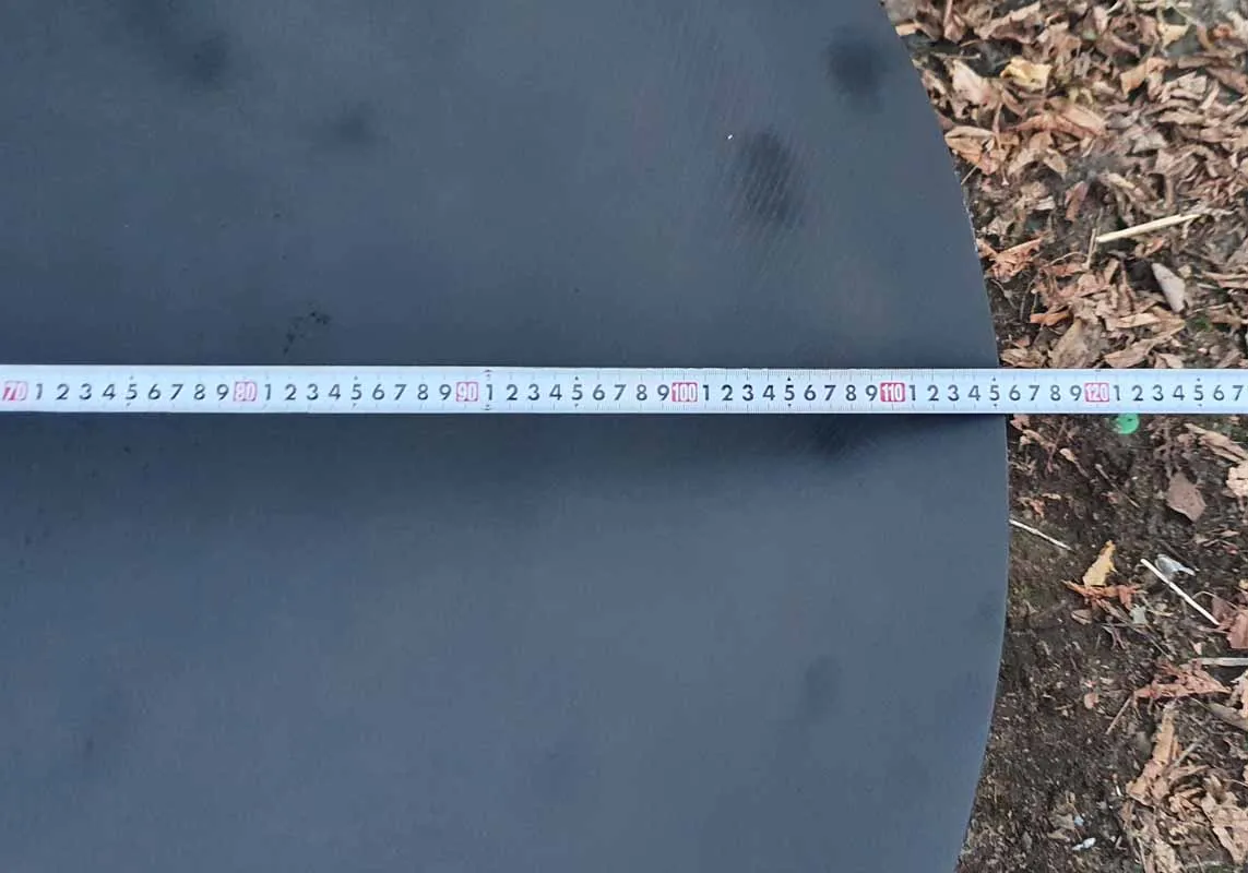 Диаметр костровой чаши 92 сантиметра, глубина чаши 10 сантиметров, толщина метала 6 миллиметров. Материал изготовления - конструкционная сталь марки Ст3.
