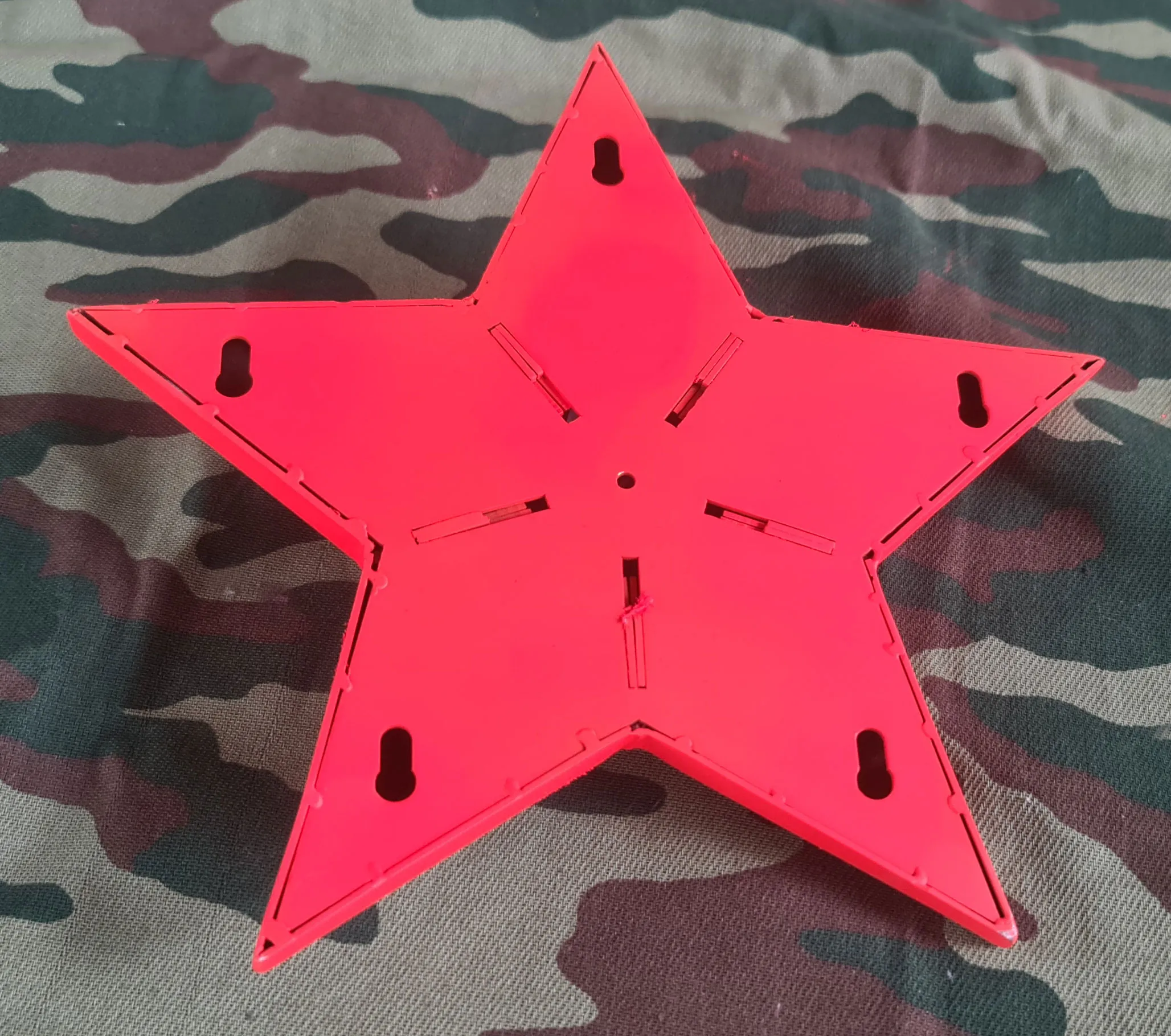 Предлагается к поставке красная звезда на памятник. Звезда изготавливается из нержавеющей стали с последующим окрашиванием изделия в красный цвет. С тыльной стороны звезды имеются отверстия для крепежа изделия на тело обелиска. Толщина стенок изделия от 1 до 3 мм. Диаметр звезды согласовывается с заказчиком, он может быть разным, от маленького 100 – 150 мм., до огромного 1500 мм. Звезда на памятник рассчитана для эксплуатации в любых климатических условиях. Изготавливается звезда на заказ в любом оттенке красного цвета.